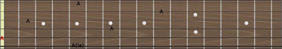 - Réglez votre sixième corde avec un doigt sur la case 5 (A) sur la même note.